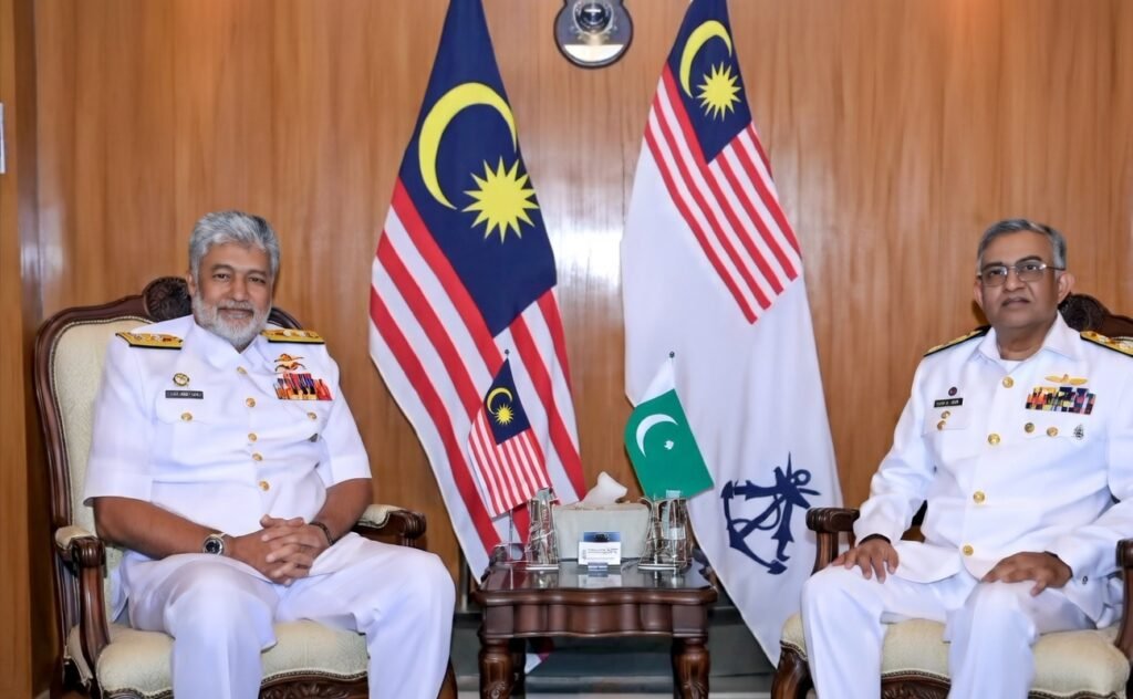 RAWALPINDI: (Yaseen Hashmi) Admiral Naveed Ashraf, Chief of the Naval Staff (CNS) of Pakistan, paid an official visit to Malaysia, meeting with the leadership of the Royal Malaysian Navy. Admiral Ashraf was received at the Royal Malaysian Navy Headquarters by Admiral Tan Sri (Dr.) Zulkifli Bin Asnin, Chief of the Royal Malaysian Navy, with a ceremonial Guard of Honor.