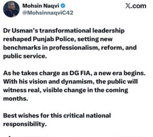 Dr. Usman Appointed DG FIA, Signals New Era of Reforms