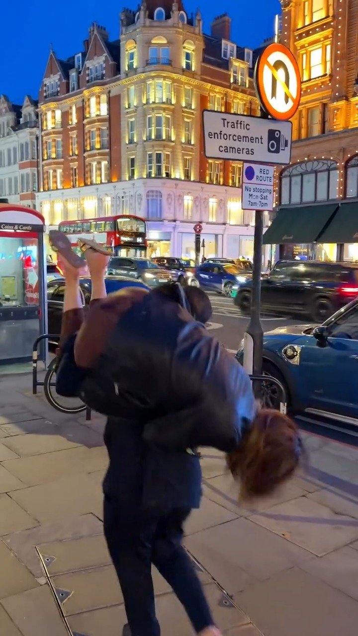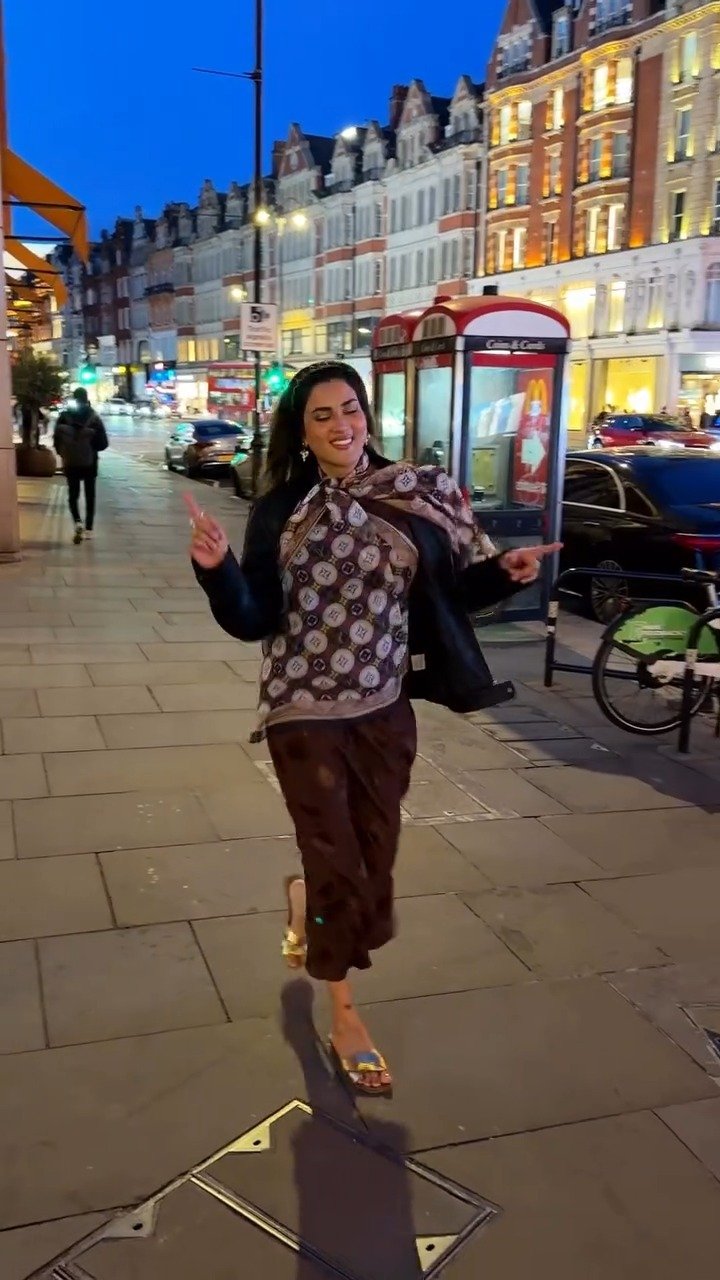 In London, Pakistani actress, model and host Fiza Ali, recently seen with her husband Ejaz Khan, recreated a viral moment that previously drew widespread criticism on social media. The couple was spotted outside Harrods, where they appeared to reenact a lifting gesture that had gone viral during her television show.