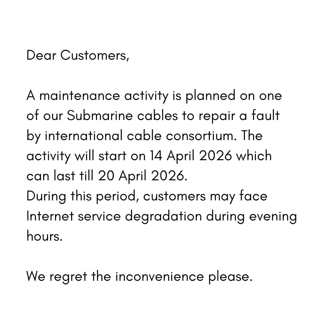 Authorities stated that service impacts are expected to remain limited and temporary, with most daytime connectivity likely to remain stable. However, fluctuations in speed and latency may still occur depending on traffic load and routing adjustments during the repair window.