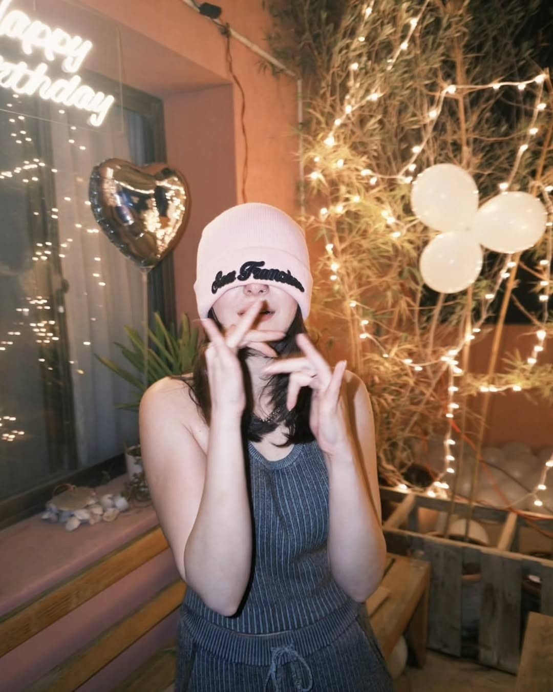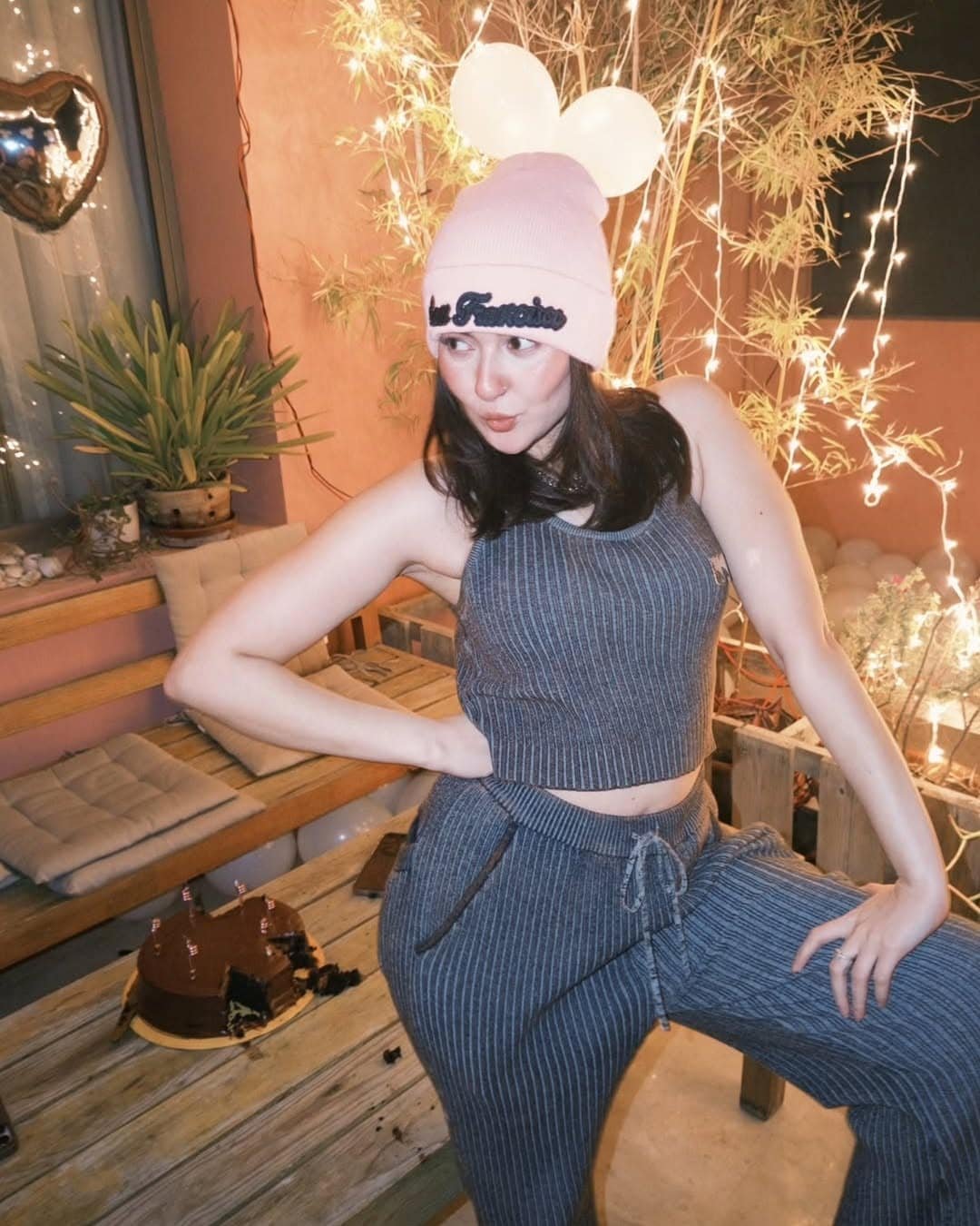 The actress, known for her strong social media presence and candid personality, shared glimpses from the celebration on her Instagram account. She was seen wearing a grey co-ord set paired with a pink beanie, reflecting her signature relaxed and contemporary fashion style.