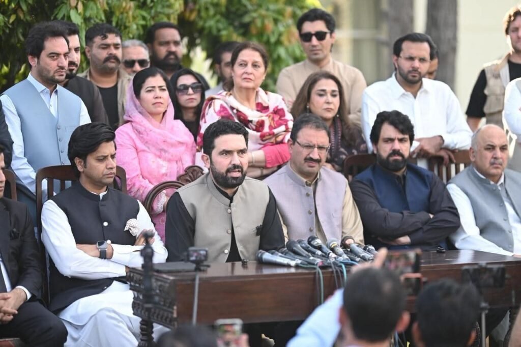 Addressing a press conference at Pakhtunkhwa House, Afridi said the ouster of the government on April 9, 2022, was the result of a “foreign-backed regime change,” claiming it reversed economic gains. He alleged that GDP growth fell from over 6% to around 2.7% after the change, while inflation and poverty surged.