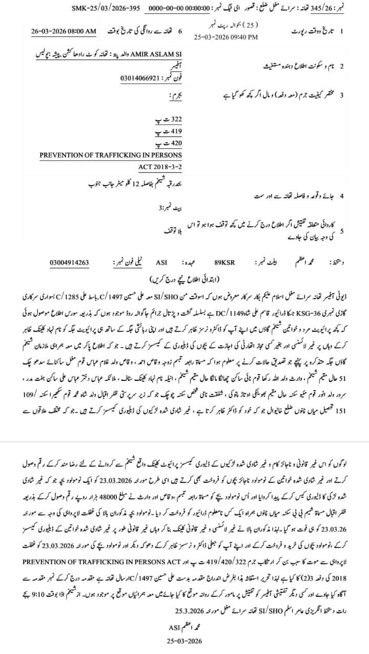 Tragically, due to negligence on the part of the hospital staff and the accused buyer identified as Zafar, the infant did not survive. Police emphasized that the child’s death highlights the dangerous and illicit practices carried out at the clinic.